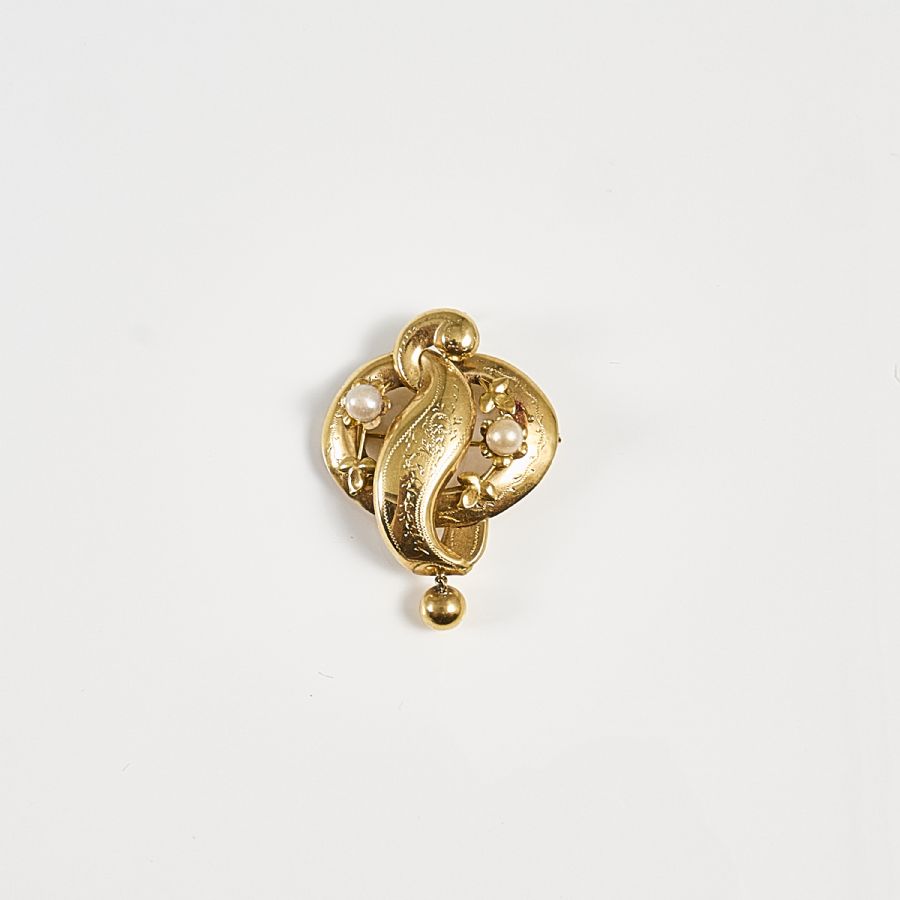 18k guld, med pärlor. Längd: 5 cm. Vikt: 7,4 gr brutto