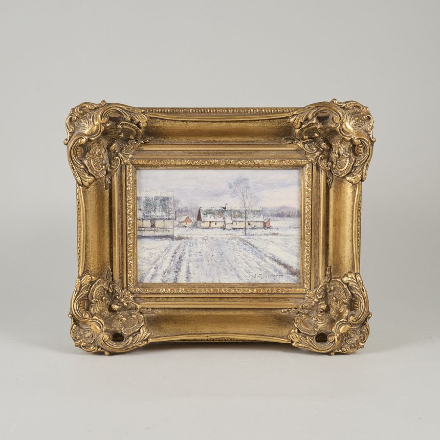 Jean Rosengren (1894-1965), Sverige. Signerad, skånegård. Olja på duk, 15x20 cm, yttermått inklusive ram: 30x37 cm