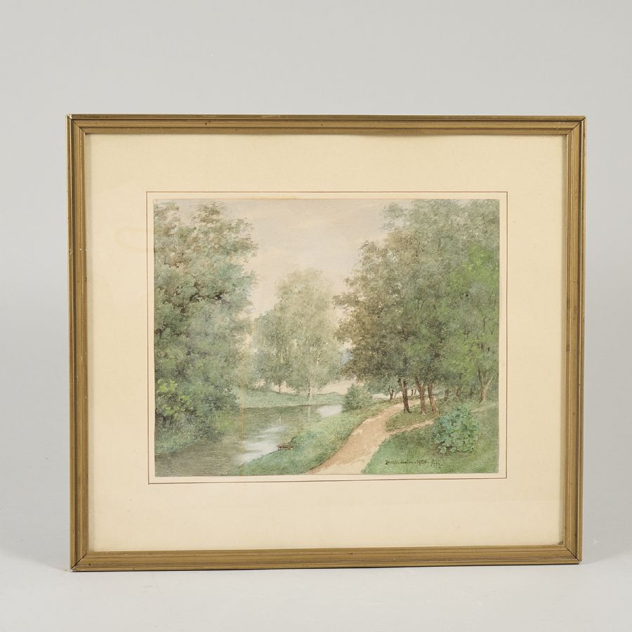 Monogramsignerad, akvarell, AHJ, Drottningholm 1900,18x21,5, yttermått inklusive ram: 29x33 cm