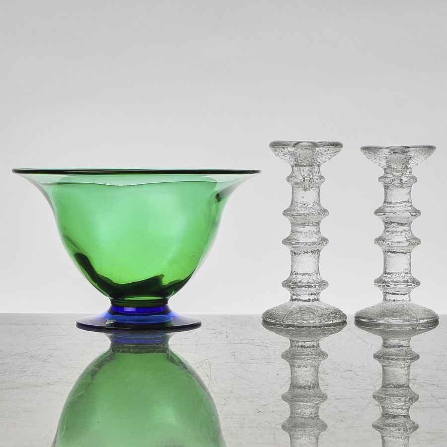 Orrefors Glassworks, Sweden, + 1 par Ljusstakar Festivo. Height: 15-18,