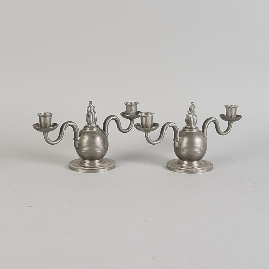 Ett par, Casoletter, Tenn, GAB Guldsmedsaktiebolaget, 1945. Längd: 27 cm. Höjd: 14 cm