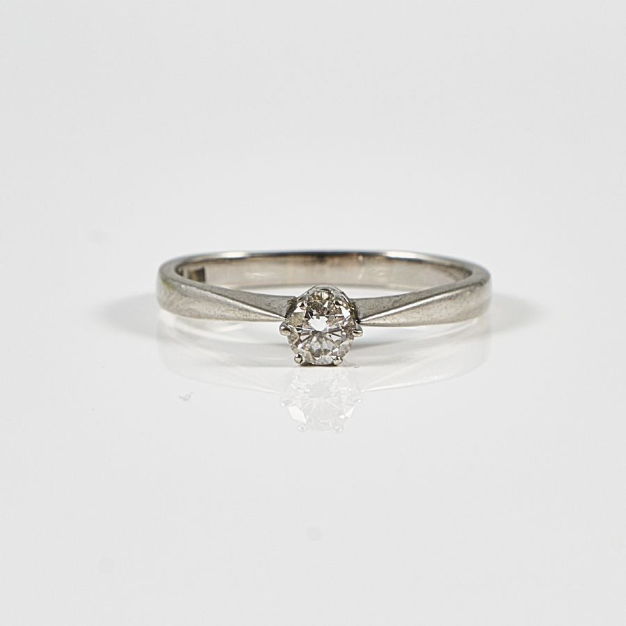 18k guld, vitguld, med briljant 0,16ct. Vikt: 2,4g ca