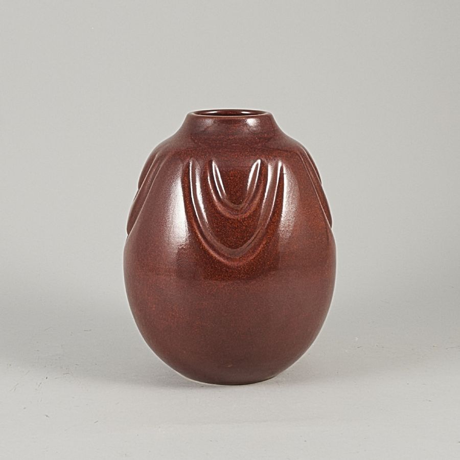 Ukita Takeshi, Japan, rödglaserad keramik, reliefdekor. Bredd: 20 cm. Höjd: 24,5 cm med originallåda