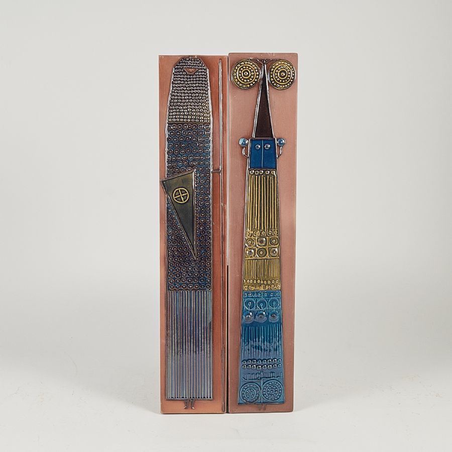 WALL RELIEF SCULPTURES, 2 st, Rörstrand, Signerad IP, Keramik, 52x10