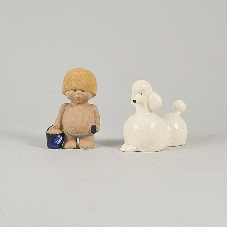 Skulpturer, Gustavsberg, "Pudel" ur serien Kennel, "Väst" ur serien All världen barn, keramik