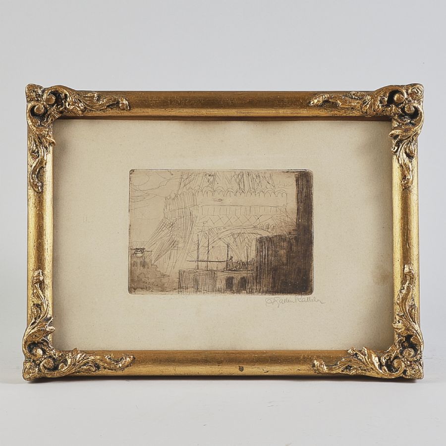 ETCHING, Eiffeltornet. Signerad, 1909. Bildmått: 11,5x17 cm, yttermått inklusive ram: 27x36