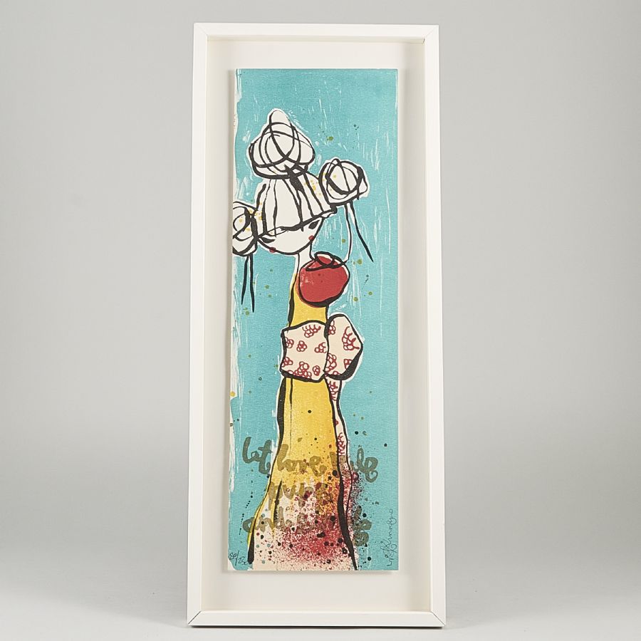 Signerad, numrerad 80/230. Färglitografi. Bladets mått: 61x20 cm, yttermått inklusive ram: 72x30 cm