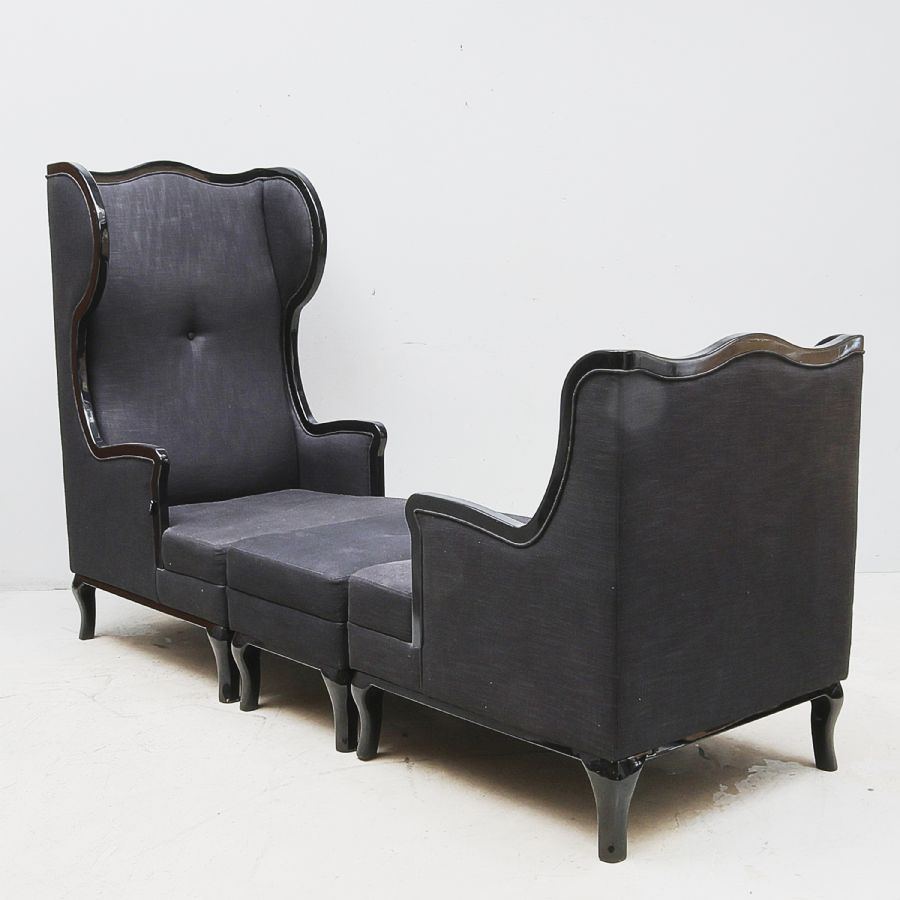 3 delad, Design: Peter Ingwersen, svartlackerad stomme med svart textilklädsel, Raun, label marked,