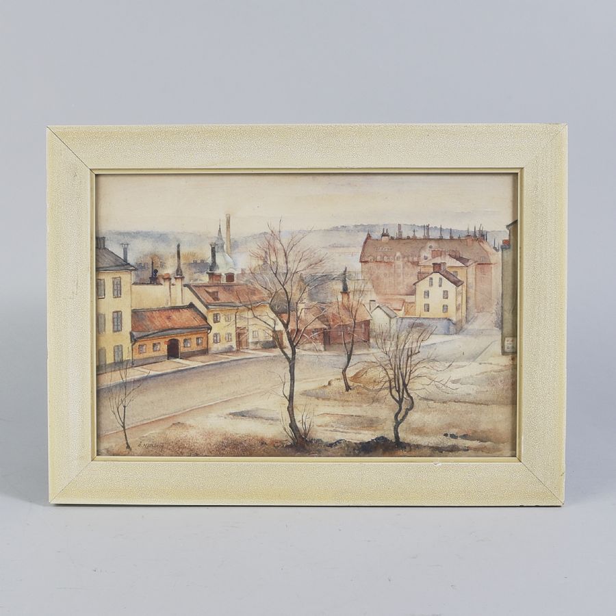 Signerad, akvarell, Stockholm, 24x35cm, yttermått inklusive ram: 32x43cm