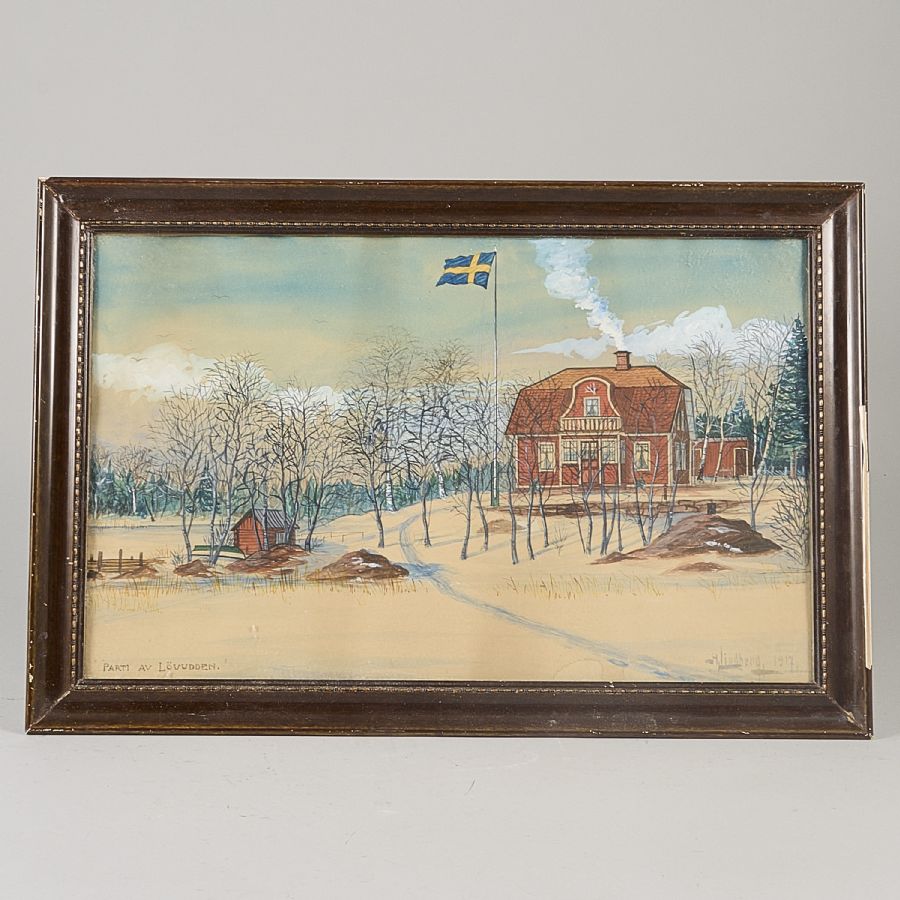H Lindberg. Signerad, akvarell, daterad 1917, Lövudden, Arholma, yttermått inklusive ram: 39x59