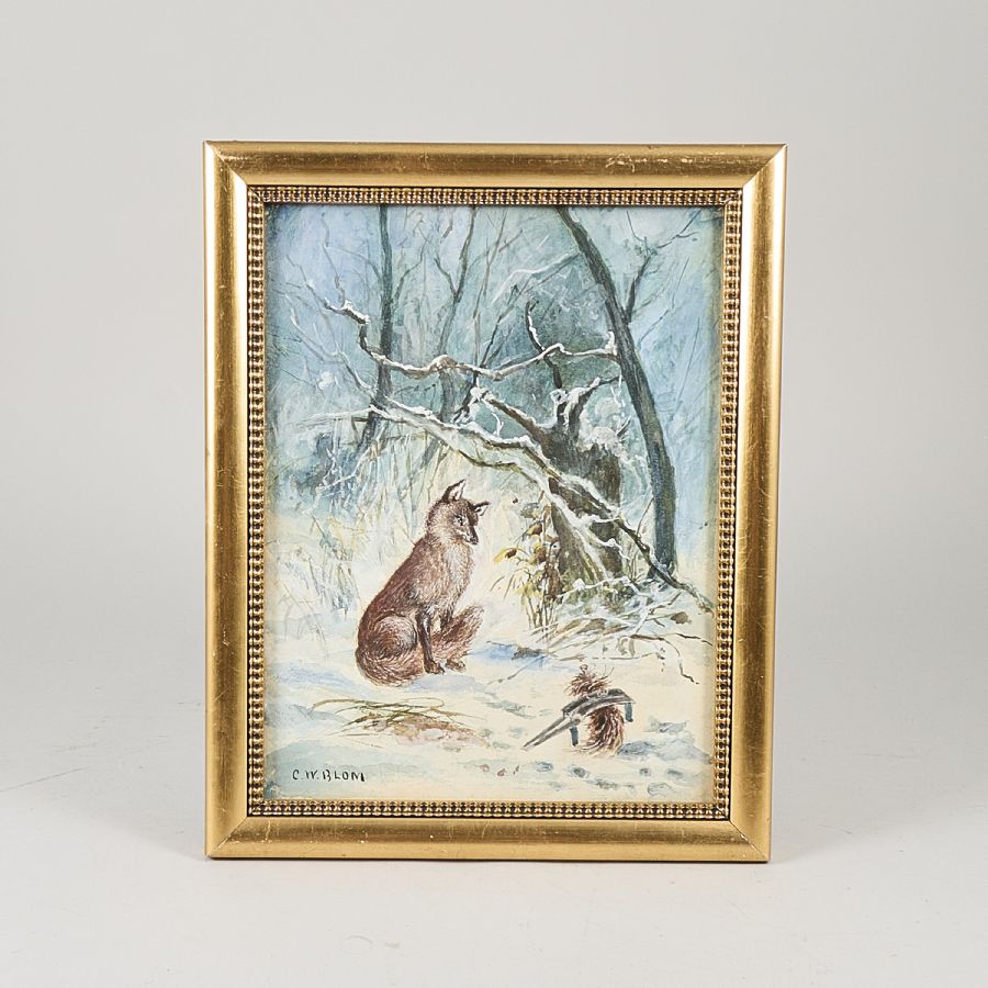 Oidentifierad konstnär. Signerad V W Blom, räv, 33x25 cm, yttermått inklusive ram: 40x31 cm