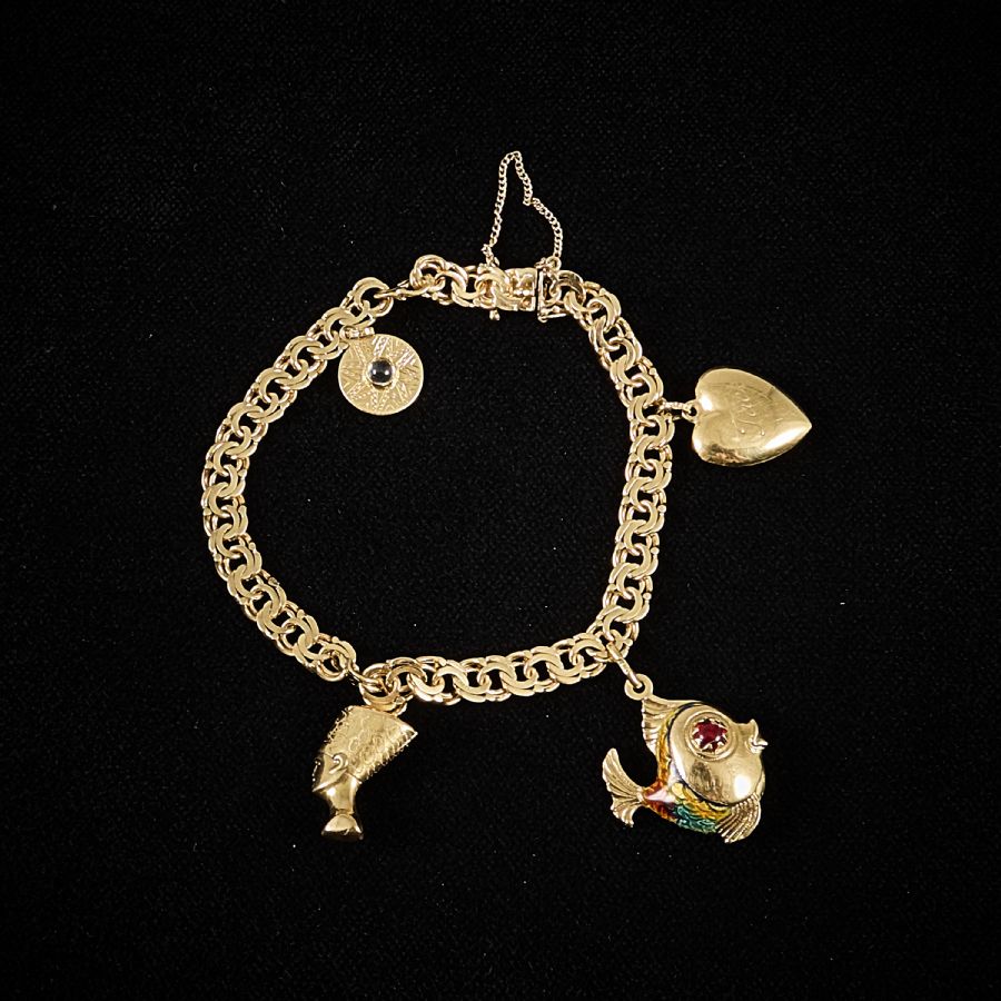 18k guld. Med berlocker, bruttovikt: 18,3 g. Längd: 18 cm