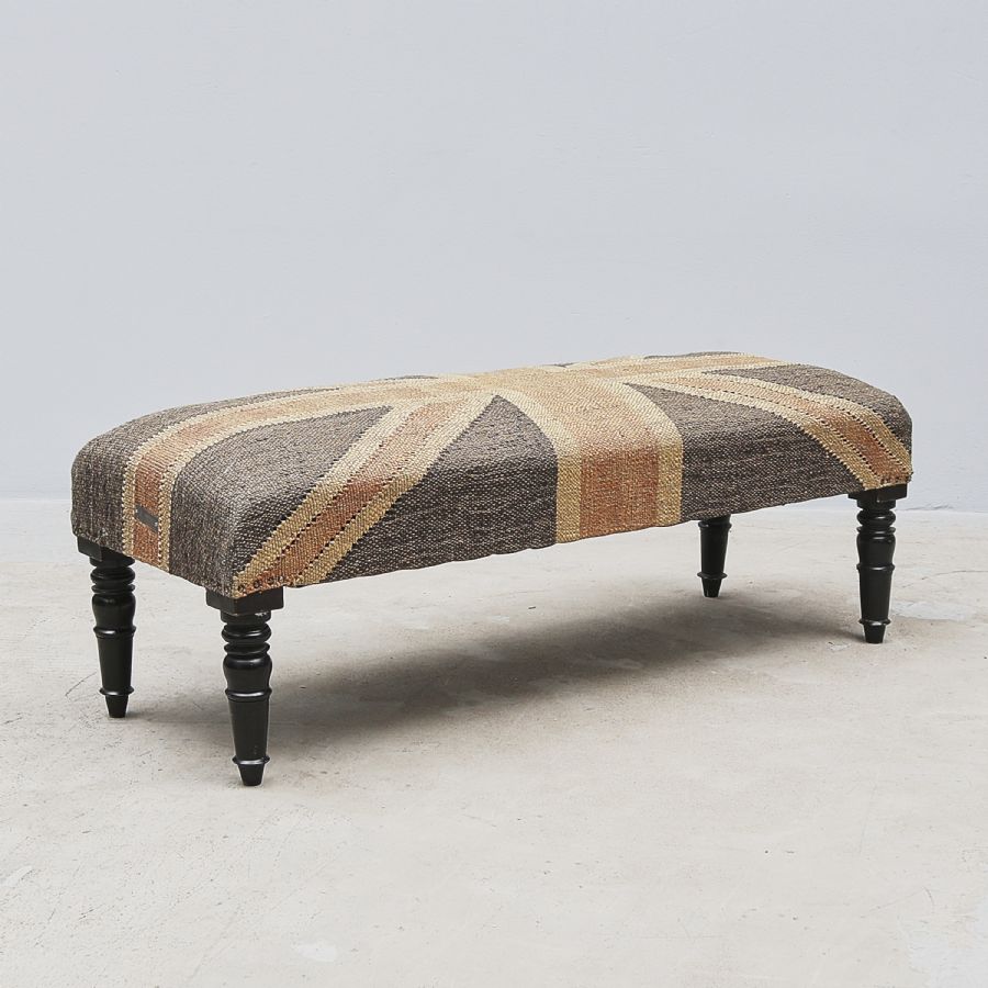Lifestyle Home collection, svärtade svaravde ben, fast stoppad sits föetsällande engelska flaggan. Längd: 220 cm, djup: 41 cm, höjd: 40 cm