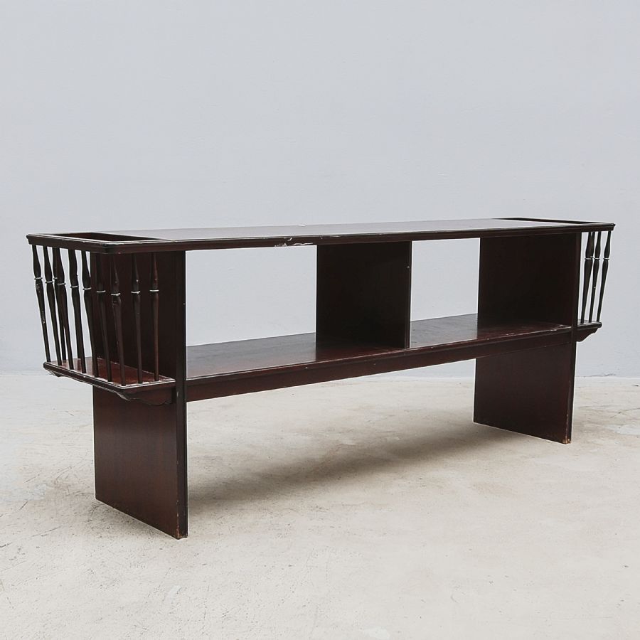 med tidningskorgar, mahogny. Bredd: 160 cm. Djup: 36 cm. Höjd: 60 cm