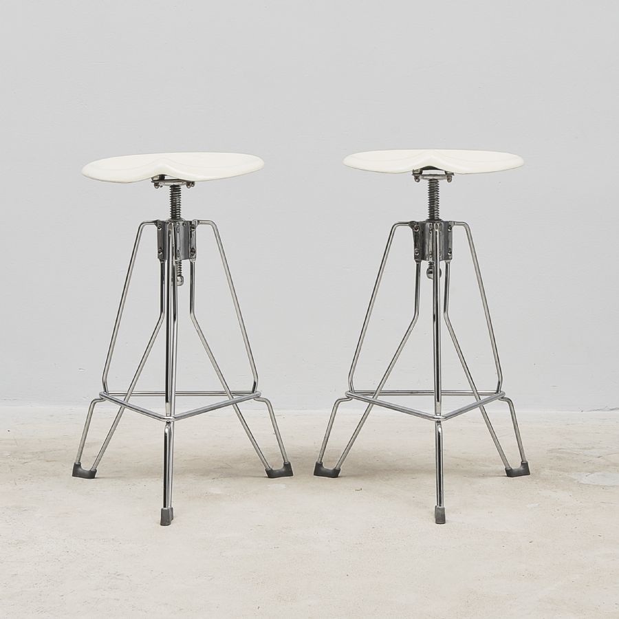 2 st, Yasu Sasamoto, Dulton & Co, "Clipper", stål och lackerat stål med beige sits, Hödj -och sänkbar, märkt i sitsen