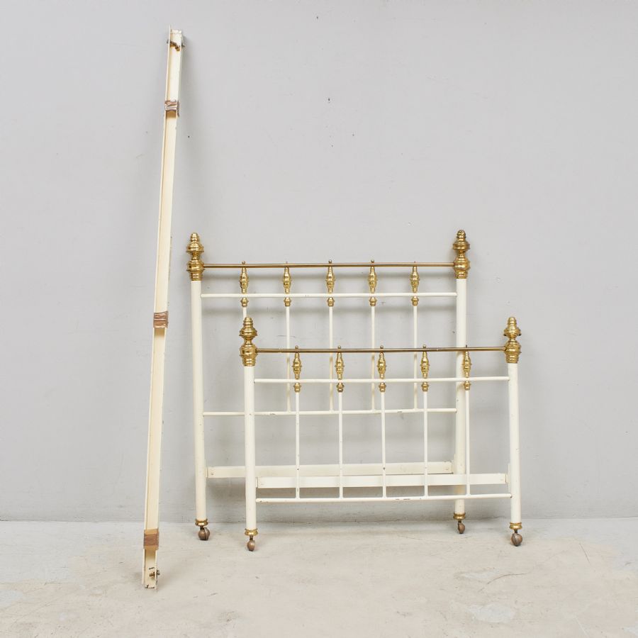 around year 1900, vitmålade metallgavlar med mässingknoppar, trissor, Width, 105. Length: 205 cm. Height: 90-120 cm, en mässingknopp saknas.