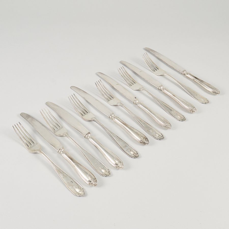 6 + 6 delar, silver, Modell Vasa. Längd: 21-25,5