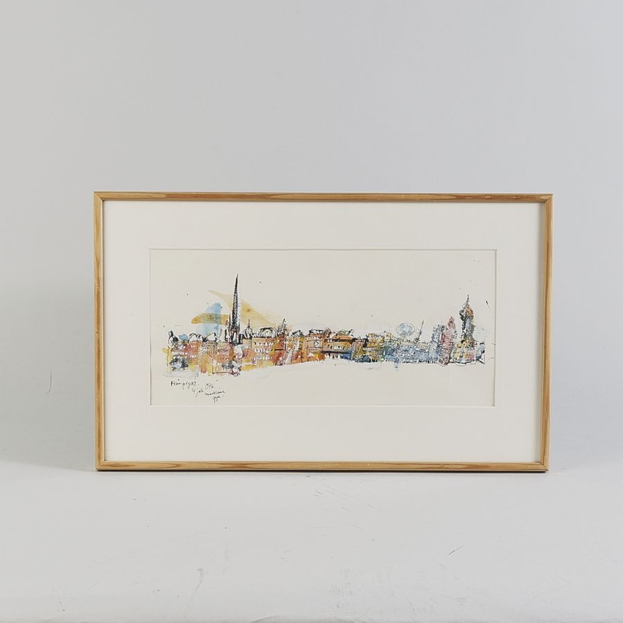 "Från Pryss". Signerad, daterad 1976, Stockholm. Blandteknik, bildmått: 16x36 cm, yttermått inklusive ram: 28x47 cm
