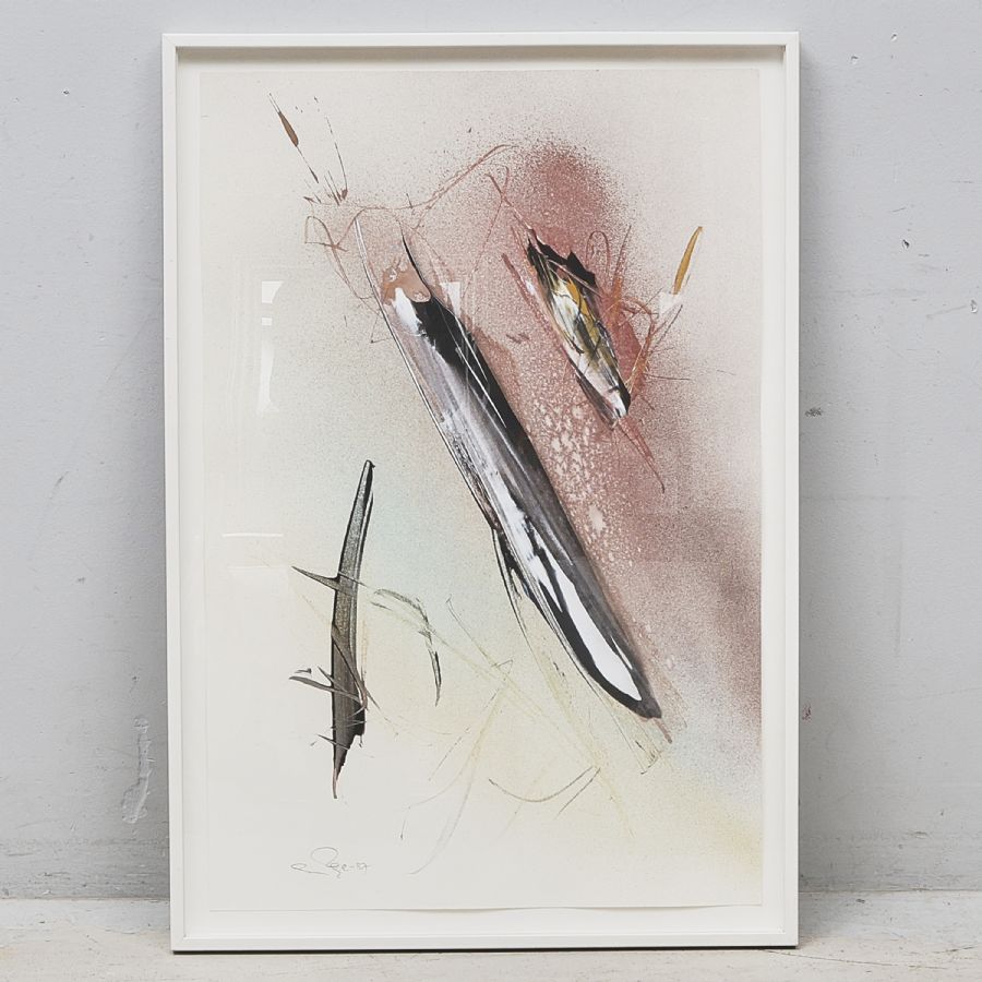 Signerad, numrerad -87. Bladets mått: 96x62 cm, blandteknik, yttermått inklusive ram: 103x71 cm. Signerad