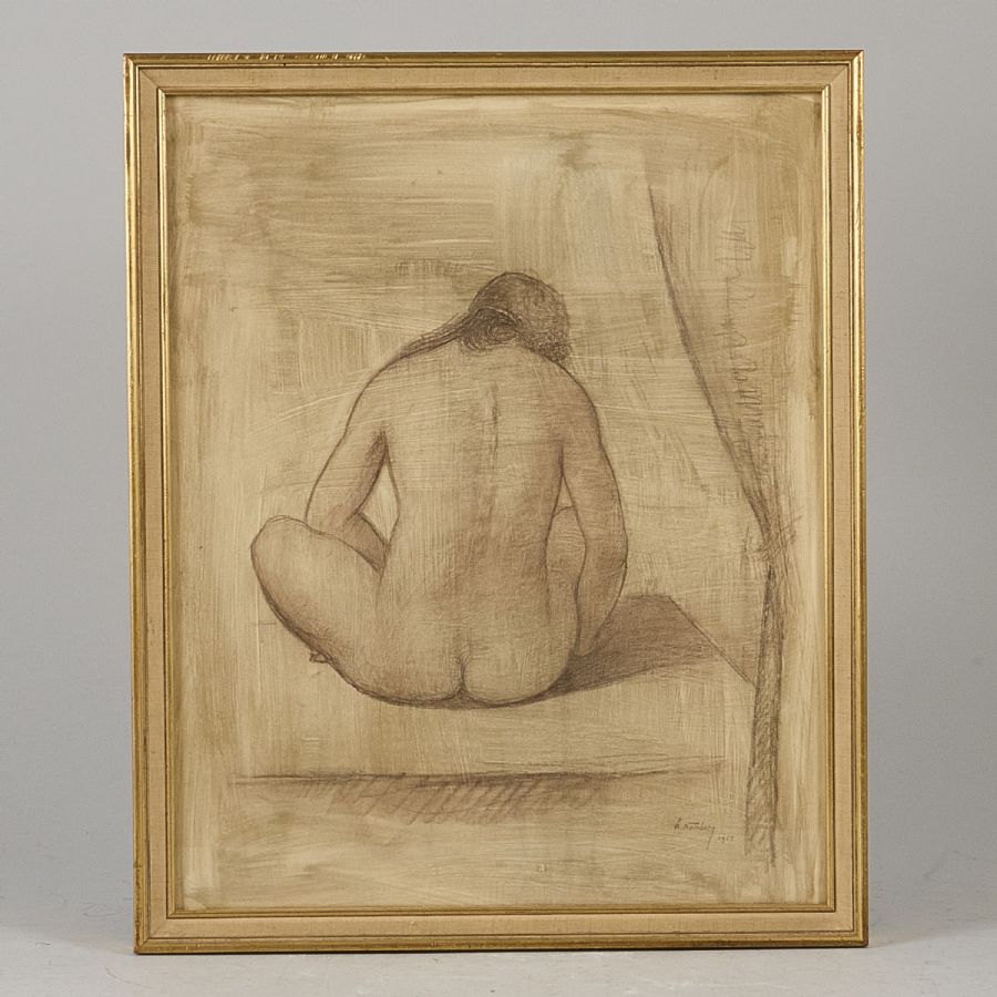 GRAPHITE DRAWING, Modell. Signerad, daterad 1953,40x32 cm, yttermått inklusive ram: 44x36 cm