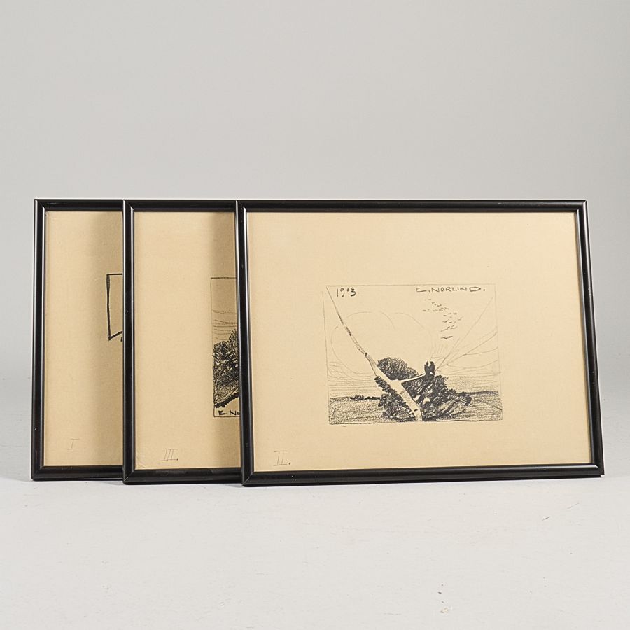 GRAPHITE DRAWING, 3 st, Ernst Norlind (1877-1952), Sverige, Signerad, yttermått inklusive ram: 24x31