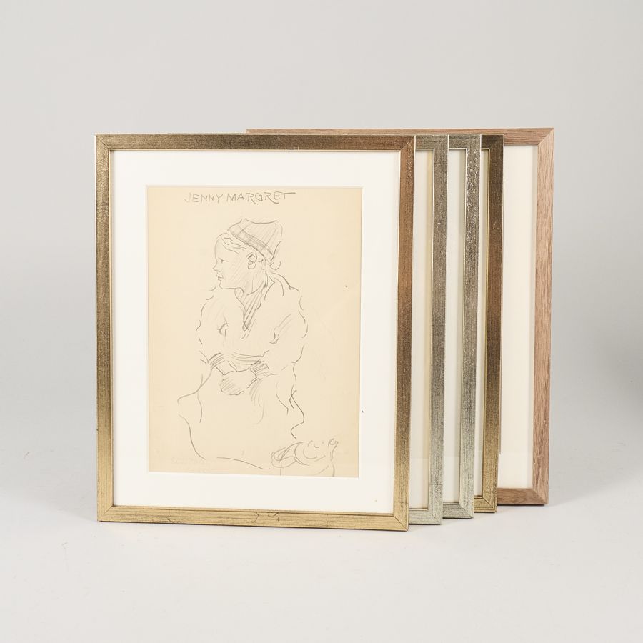 Blyertsteckningar, 5 st, Alla signerade, 3 st daterade - 05, samer. Bildmått: 23,5x17 cm, yttermått inklusive ram: 32x26 cm