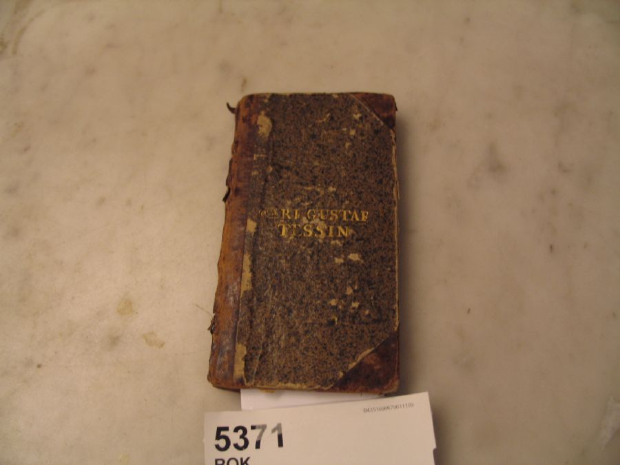 Carl Gustaf Tessins namn på pärmens framsida. " Le BARON D´ALBIKRAC, COMEDIE par P. corneille. Paris M DC LXXXIX
