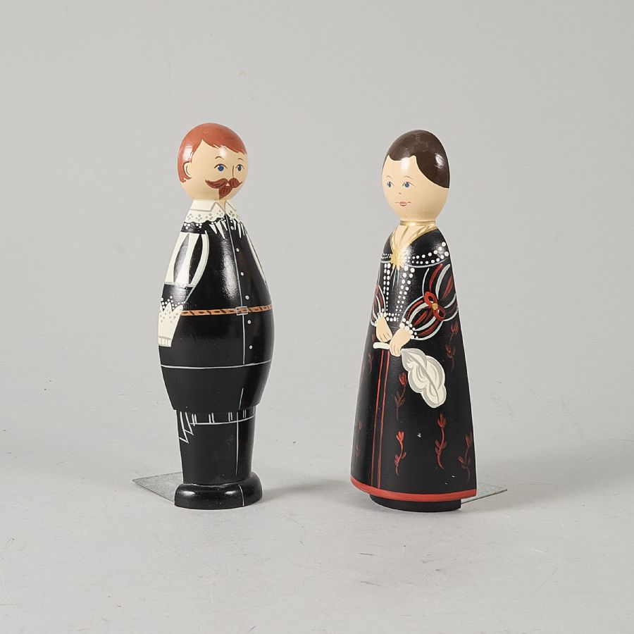 2 st, bemålat trä föreställande Gustsav II Adolf med gemål. Höjd: 20,5 cm