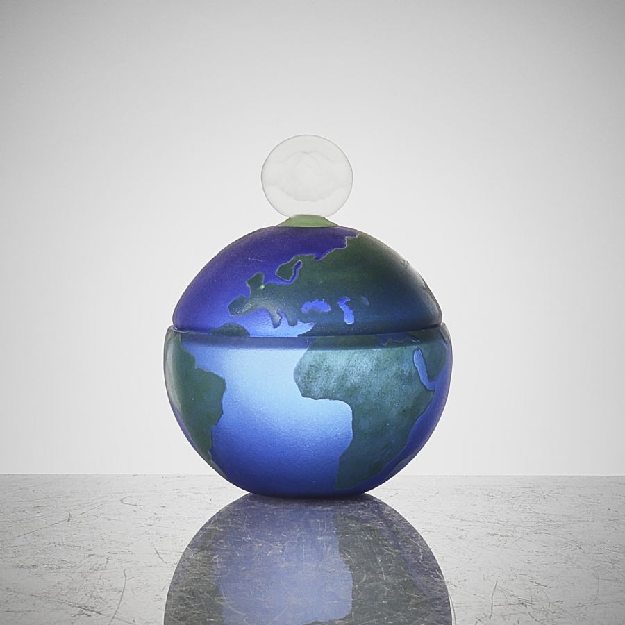 Liknande föremål: bonboniere bonbonjär glaskonst godisskål jordglob karta kartor konstglas pukeberg