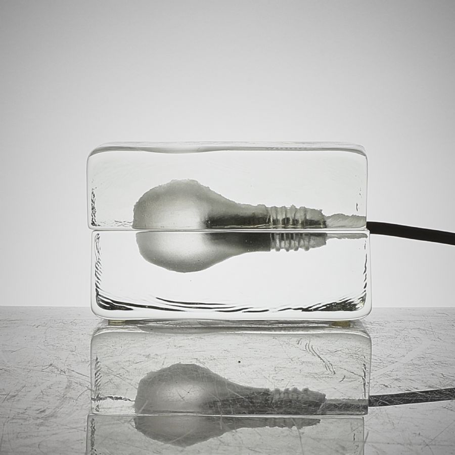 Harri Koskinen, "Block Lamp" för Design House Stockholm, glas, svart sladd, Höjd: 7,5 cm. Längd: 11,5 cm