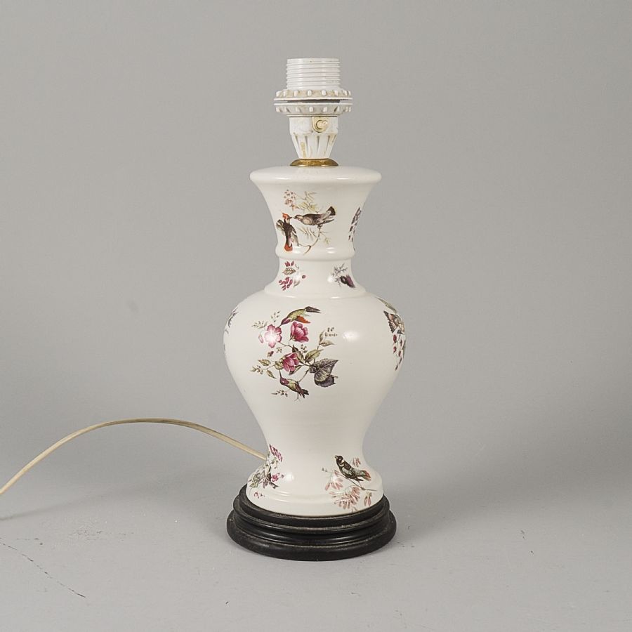 porslin, mend dekor av fåglar. Höjd: 35 cm
