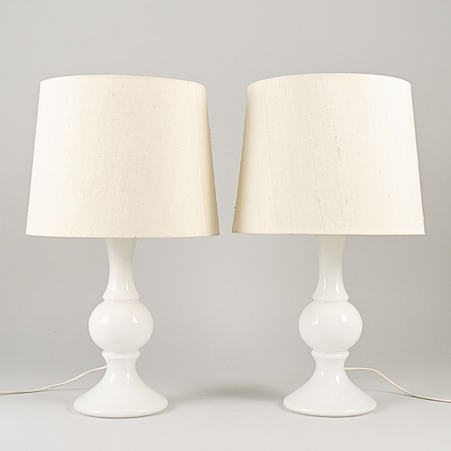ett par, 60 tal, vitt glas. Höjd: 54 cm
