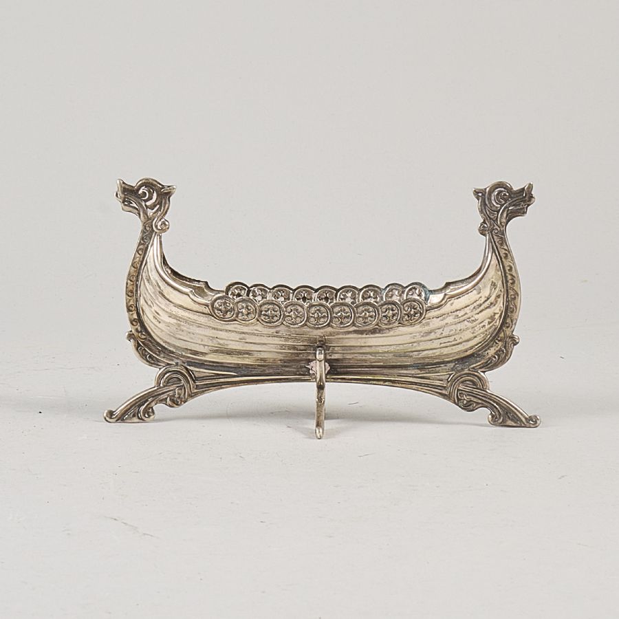 silver (830), vikingabåt. Längd: 15,5 cm, höjd: 8,5 cm, vikt: 85g ca