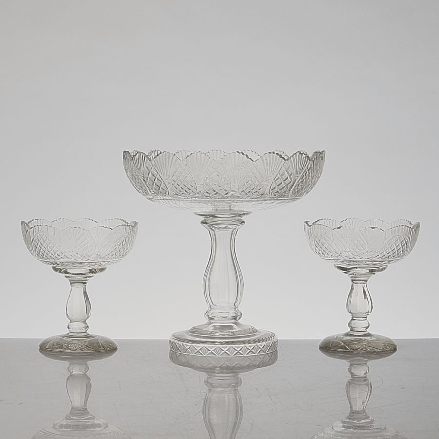 på fot, 3 st, kristall, 1800-tal. Diameter: 15-26, höjd: 16-25, slitage och skador