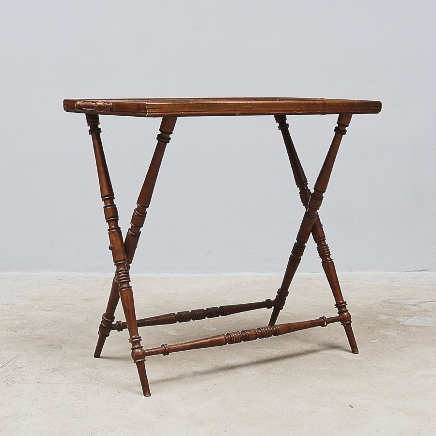 1890-tal, lös bricka, fällbar benställning, betsad. Bredd: 88 cm. Djup: 50 cm. Höjd: 81 cm