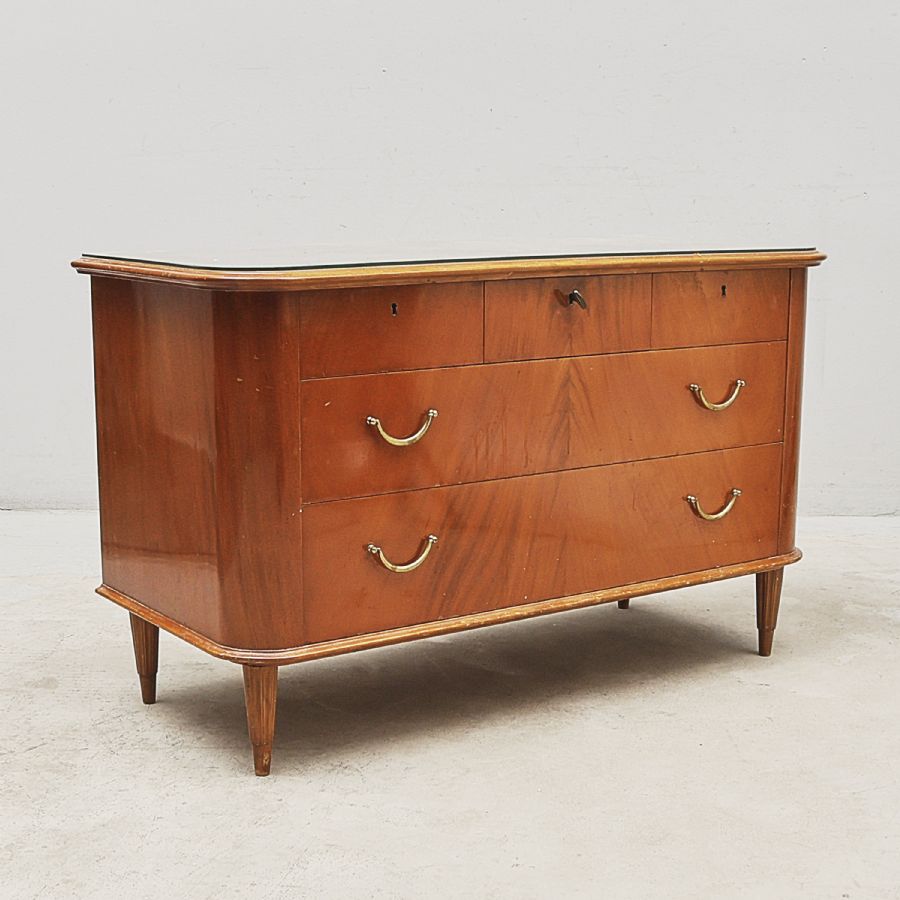 1940-tal, med glasskiva, tre lådor, mahogny. Bredd: 106 cm, bredd: 45 cm, höjd: 65 cm