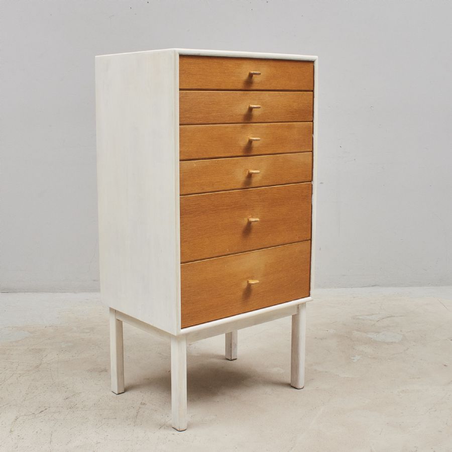 1950/60-tal, S. Engtröm och G. Myrstrand, AB Svenska Möbelfabrikerna i Bodafors, 6 lådor, teak. Bredd: 60 cm, du. 45, höjd: 118 cm, stämplad