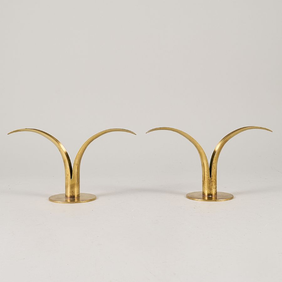 Ljusstakar, Ett par, mässing, Ystad metall, ”Liljan”, höjd. 12,5 c. Längd: 22 cm