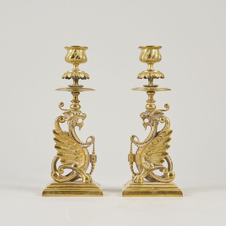 Ett par, Gripar, mässing. Höjd: 22 cm
