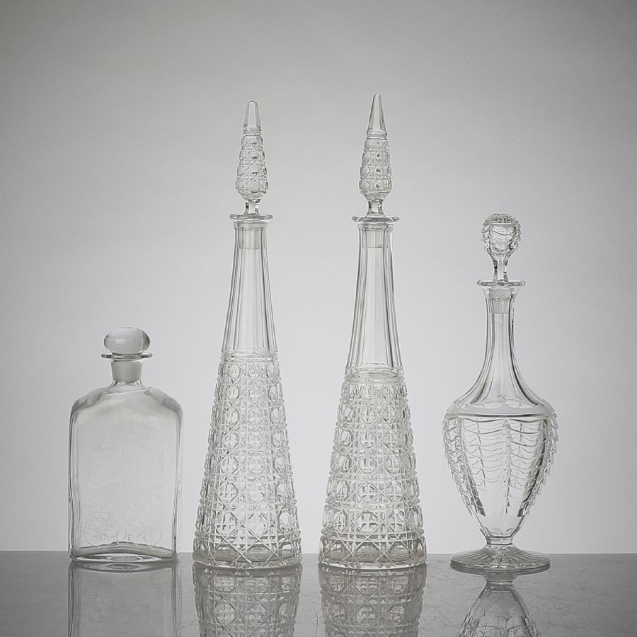 2 + 1+ 1 st, med proppar, kristall, etsad dekor. Höjd: 22-44 cm