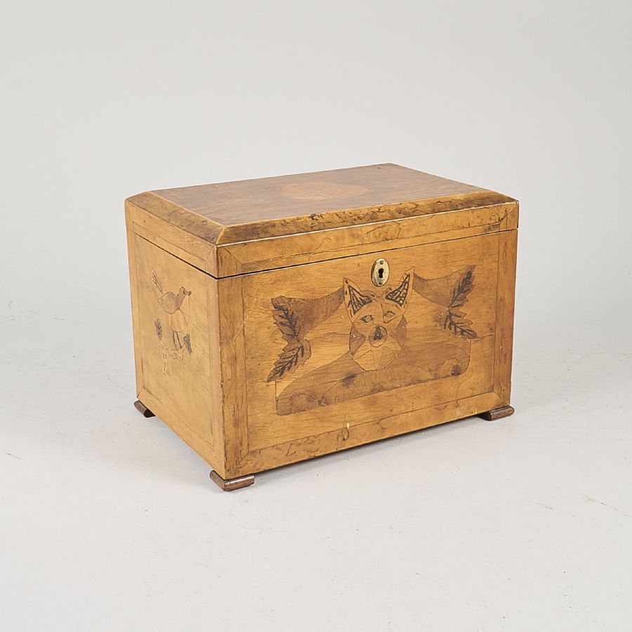 1800-tal, Intarsia. Längd: 27 cm, djup: 18 cm, höjd: 21 cm