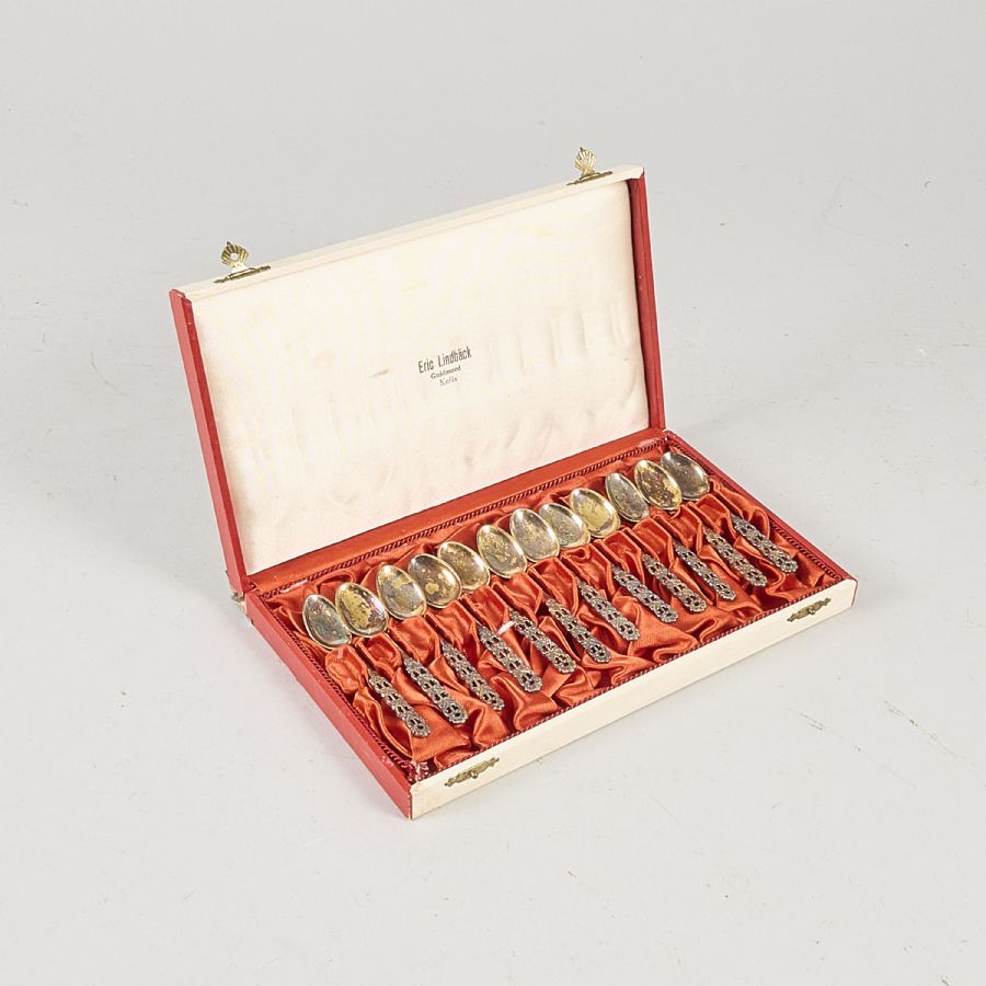 12 pieces, silver, etui medföljer. Length: 9, 5 cm, weight: 90 gr ca,