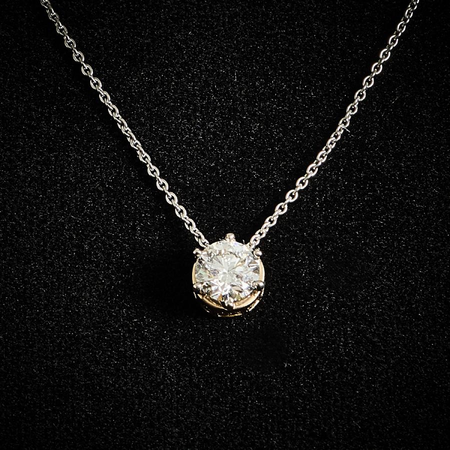med hänge i 18k. Med diamant ca 1,1 ct, Bruttovikt: 3,4 g. Längd: 46. Kedjan saknar stämplar