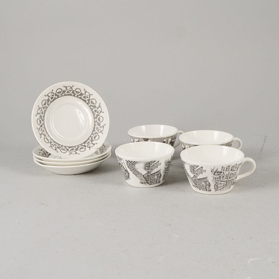 4 pcs, Gustavsberg, Sweden, form Calle B, föreställande valsprofiler från Domarvet. Diameter: 10 cm,