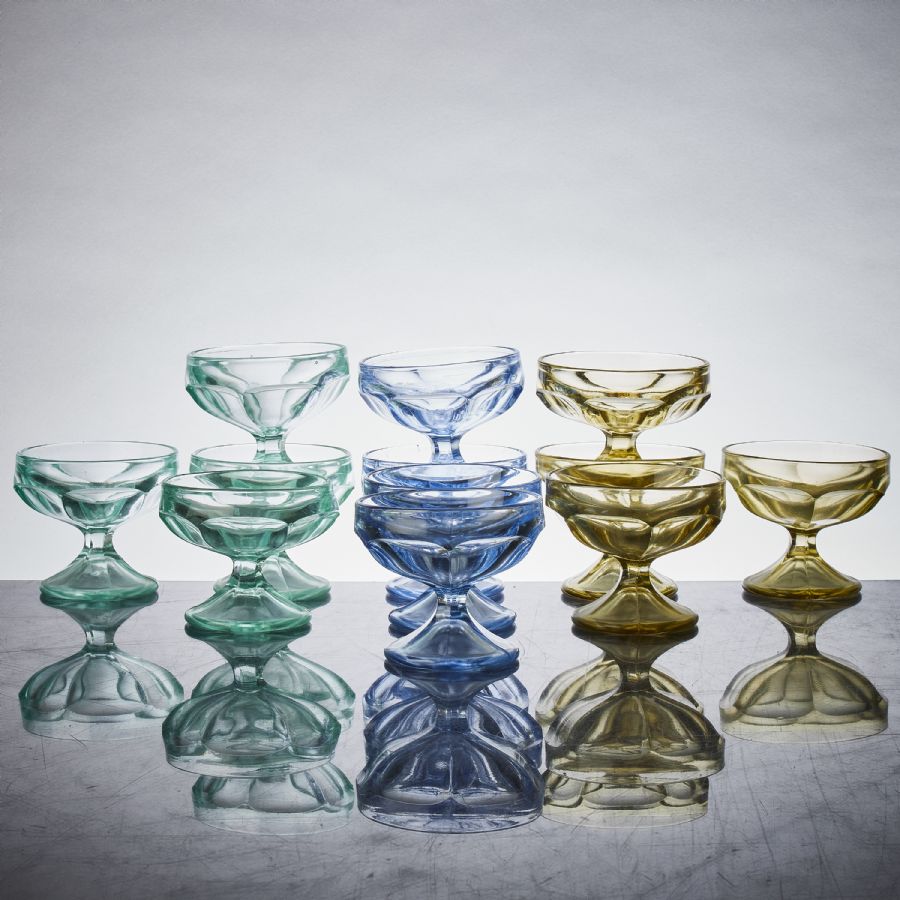 12 st, 1950-tal, färgat glas. Höjd: 8 cm