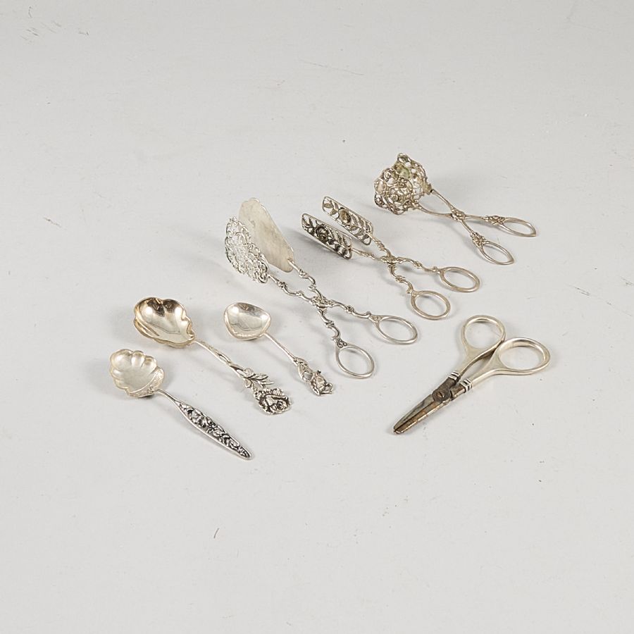 + grape scissors, 7 pieces, silver. Length: 11-18. Weight: 220g brutto,