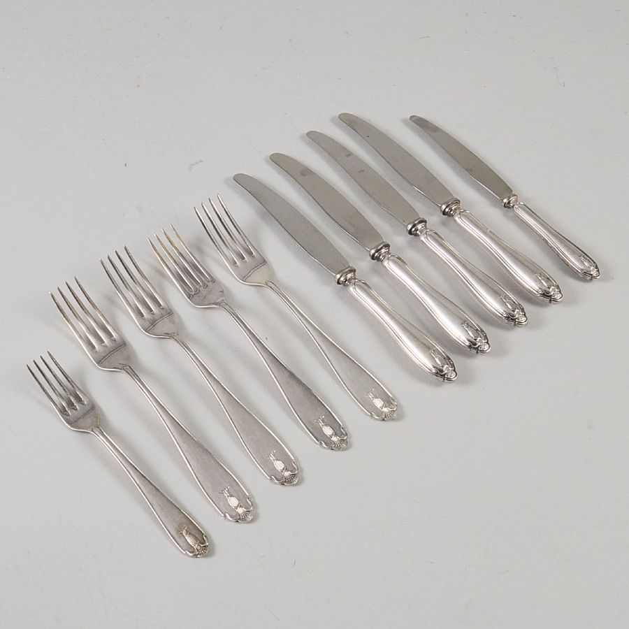 4+ 4+ 1+ 1 delar, silver, vasamodell. Längd: 14,5-20, vikt: 405 gr brutto, varav knivar 236 gr