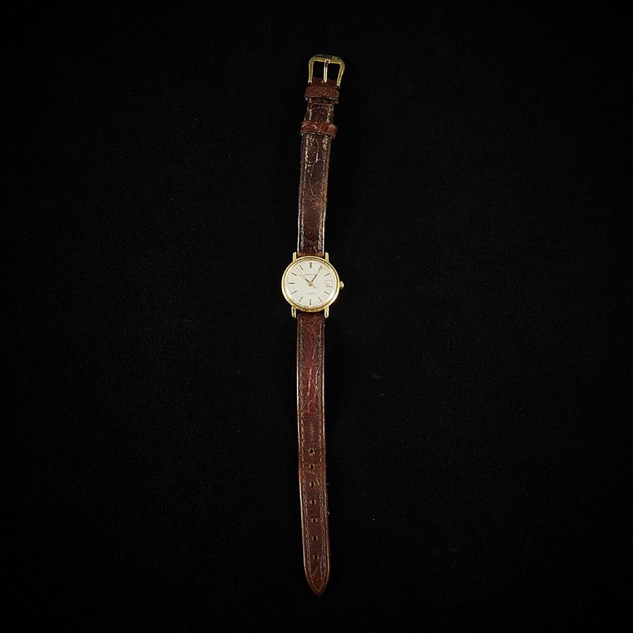 Certina, 18k guld. Quartz. Diameter: 2,0 cm, Bruttovikt: 13,2 g. Gåvoinskription. Ask medföljer