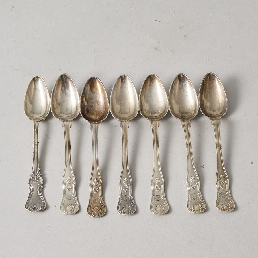 7 st, silver, snäckmodell, 1860. Längd: 15 cm, vikt: 165 gr ca