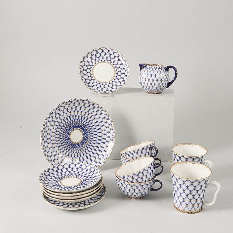 8 delar, Lomonosov, Sovjet, märkt Made in USSR, ”Cobalt Net”